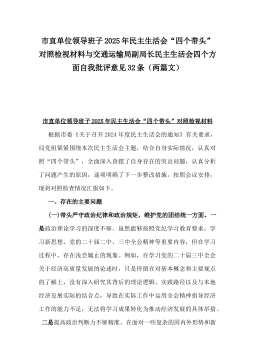 区局班子2025年组织生活会对照“四个带头”含反面典型案例剖析方面个人检查材料与离退休党工委副书记围绕“四个带头七个方面”个人对照检查发言材料【含典型事例剖析】二篇文