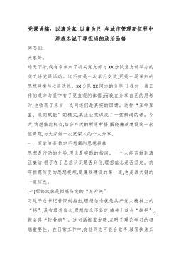 党课讲稿:以清为基 以廉为尺 在城市管理新征程中淬炼忠诚干净担当的政治品格