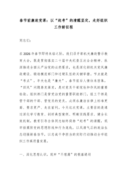 党课讲稿:以清为基以廉为尺在城市管理新征程中淬炼忠诚干净担当的政治品格同志们:大家好。昨天下午,我有幸参加了机关党支部与XX分队党支部举办的交叉讲党课活动。这不仅是一次学习交流,更是一场深刻的思想碰撞与心灵洗礼。XX分队XX同志的分享,让我对一线工作的艰辛与坚守有了更直观的体悟;而我在分享自己的思考时,也收获了来自一线同志们最真实的回馈。这种“互学互鉴、双向赋能”的模式,真正让党课成了一堂解渴的课。今天,我想借此机会,结合昨天的所思所悟,围绕廉政建设这一永恒课题,与大家做一次更深入的个人分享。一、深学细悟,筑牢不想腐的思想根基思想是行动的先导,理论是实践的指南。一个人能否做到清正廉洁,根子在于思想认识是否到位,理想信念是否坚定。筑牢拒腐防变的思想堤坝,是廉政建设的第一道,也是最关键的一道防线...