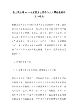 XX市审计局党支部2025年度组织生活会班子对照检查材料(七个对照)根据上级党组织关于召开2025年度基层党组织组织生活会和开展民主评议党员工作的部署要求,XX市审计局党支部委员会紧扣会议主题,在深入开展学习研讨、广泛征求意见建议、普遍进行谈心谈话的基础上,严格对照本次组织生活会明确的七个方面重点内容,紧密结合支部一年来的工作实际,深入查摆支部班子存在的问题,深刻剖析问题产生的根源,并研究制定整改措施。现将对照检查情况报告如下。一、存在的主要问题支部班子坚持问题导向,对照七个方面要求,逐条梳理检视,查摆出以下具体问题。(一)理论武装系统性深入性不强,学用转化存在落差一是理论学习规划的系统性整合不好。支部年度学习计划虽已制定,但课程安排的递进性与专题性不强,存在“零敲碎打”现象。例如,在组织学...