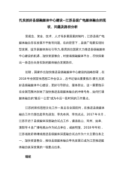 扎实抓好县级融媒体中心建设--江苏县级广电媒体融合的现状、问题及路径分析