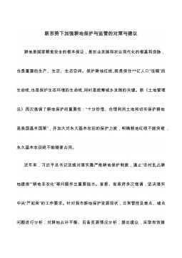 新形势下加强耕地保护与监管的对策与建议耕地是国家粮食安全的根本保证,是农业发展和农业现代化的根基和命脉,也是重要的生产、生活、生态空间。保护耕地红线,既是保住**亿人口“饭碗”的生命线,也是保护生态环境的生命线,同时是统筹城乡发展的关键。新《土地管理法》再次强调了耕地保护的重要性:“十分珍惜、合理利用土地和切实保护耕地是我国基本国策”,并加大对永久基本农田的保护力度,明确耕地红线不能突破,永久基本农田绝不能随便占用。近年来,习近平总书记连续对落实最严格耕地保护制度,遏止“农村乱占耕地建房”“耕地非农化”等问题作出重要指示。省委、省政府多次强调,坚决落实中央“严起来”的工作要求。针对我市耕地保护...