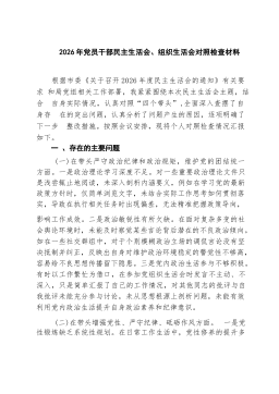 2026年党员干部民主生活会、组织生活会对照检查材料根据市委《关于召开2026年度民主生活会的通知》有关要求和局党组相关工作部署,我紧紧围绕本次民主生活会主题,结合自身实际情况,认真对照“四个带头”,全面深入查摆了自身存在的突出问题,认真分析了问题产生的原因,逐项明确了下一步整改措施。按照会议安排,现将个人对照检查情况汇报如下。一、存在的主要问题(一)在带头严守政治纪律和政治规矩,维护党的团结统一方面。一是政治理论学习深度不足。对一些重要政治理论文件只是浅尝辄止地阅读,未深入剖析内涵要义,例如在学习党的最新政策方针时,仅简单浏览文字,未结合实际工作思考如何贯彻落实,导致在执行相关任务时出现偏差,无法精准把握政策导向,影响工作成效。二是政治敏锐性有所欠缺。在面对复杂多变的社会舆论环境时,未能及...