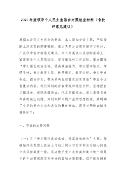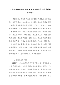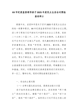 (18篇)县区委领导班子2025年度民主生活会对照检查材料(含案例剖析)县委领导班子2025年度民主生活会对照检查材料(带案例) 根据市委关于召开2025年度民主生活会的统一部署,XX县委领导班子紧扣会议主题,扎实开展会前准备工作。班子成员通过为期三天的理论学习中心组集中学习,深入研讨了习近平新时代中国特色社会主义思想和党的二十届三中、四中全会精神。班子成员之间、班子成员与分管部门负责同志、与所在支部党员代表之间深入开展了谈心谈话,累计谈话80余人次。同时,通过线上平台和线下座谈会等多种渠道,广泛征求全县各级党组织和广大干部群众的意见建议,共梳理汇总各类意见建议52条。在此基础上班子成员认真撰写个人发言提纲,为高质量开好本次民主生活会奠定了坚实的思想和工作基础。现将班子对照检查情况报告如下...