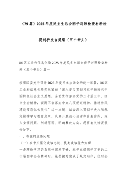 2025年民主生活会对照检查材料“带头坚决扛起管党治党责任”方面问题起草指南、实例和素材 今天,与文友们共同探讨第五方面问题的起草方法,并提供问题实例和相关素材。 在“你懂的”系列第138期中,我们已经明确,第五方面问题要从作风教育、基层减负、公文抄袭、选人用人、规范党员干部网络空间言行五个层面查摆问题。下面,我们分别探讨这五个层面需要从哪些角度查摆具体问题。一、作风教育层面问题查摆指南和实例2025年开展的深入贯彻中央八项规定精神学习教育,其核心就是作风教育。作风教育这个政治性词语,在之前的相关文章中,出现次数并不多,一般 都是表述为“作风建设”,而这次将其细化为作风教育,进一步突出了其重要性。既然是教育,就需要考虑理念、方法、重点等要素。 因此,这个层面建议从思想认识、工作方法、...