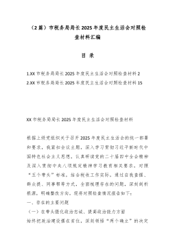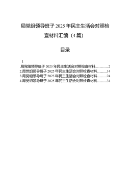 领导干部2026年度民主生活会、组织生活会对照检查发言提纲根据市委《关于召开2026年度民主生活会的通知》有关要求和局党组相关工作部署,我紧紧围绕本次民主生活会主题,结合自身实际情况,认真对照”四个带头”,全面深入查摆了自身存在的突出问题,认真分析了问题产生的原因,逐项明确了下一步整改措施。按照会议安排,现将个人对照检查情况汇报如下。一、存在的主要问题(一)在带头严守政治纪律和政治规矩,维护党的团结统一方面。一是政治理论学习表面化。虽然积极参加各类政治理论学习活动,但学习往往停留在文字表面,对”两个确立””四个意识四个自信”"两个维护等重要理论的内涵和实质理解不够深入。在学习过程中,满足于一知半解,没有深入思考这些理论与实际工作的紧密联系,未能将理论学习转化为实际行动的指南。比如,在学习党的...