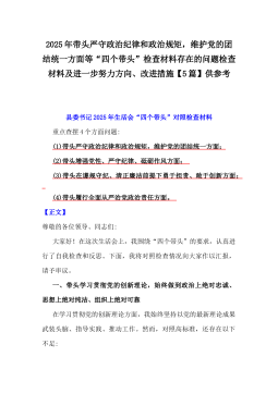 2025年带头严守政治纪律和政治规矩,维护党的团结统一方面等“四个带头”检查材料存在的问题检查材料及进一步努力方向、改进措施【5篇】供参考