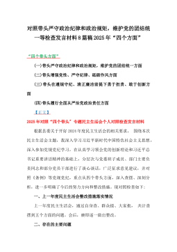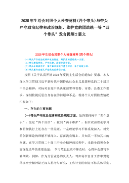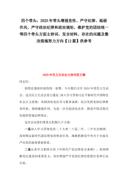 四个带头:2025年带头增强党性、严守纪律、砥砺作风、严守政治纪律和政治规矩,维护党的团结统一等四个带头方面主持词、发言材料、存在的问题及整改措施努力方向【12篇】供参考
