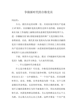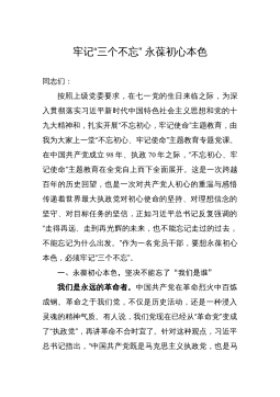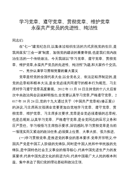 学习党章、遵守党章、贯彻党章、维护党章永葆共产党员的先进性、纯洁性同志们:在“七一”建党纪念日,以集体过组织生活的方式庆祝党的生日,是我局落实“三会一课”制度、加强党的建设的重要举措,也是我们党内政治生活的一个传统做法。今天我就以“学习党章、遵守党章、贯彻党章、维护党章,永葆共产党员的先进性、纯洁性”为题,和大家作个交流。一、充分认清学习贯彻党章的重大意义党章是经党的全国代表大会,以全党名义、依法定程序制定的,是党的总章程和根本大法,是全党必须共同遵守的根本行为规范。习主席对学习遵守党章高度重视。2012年11月16日主持党的十八大后首次中央政治局会议就鲜明指出,全党要认真学习党章,严格遵守党...