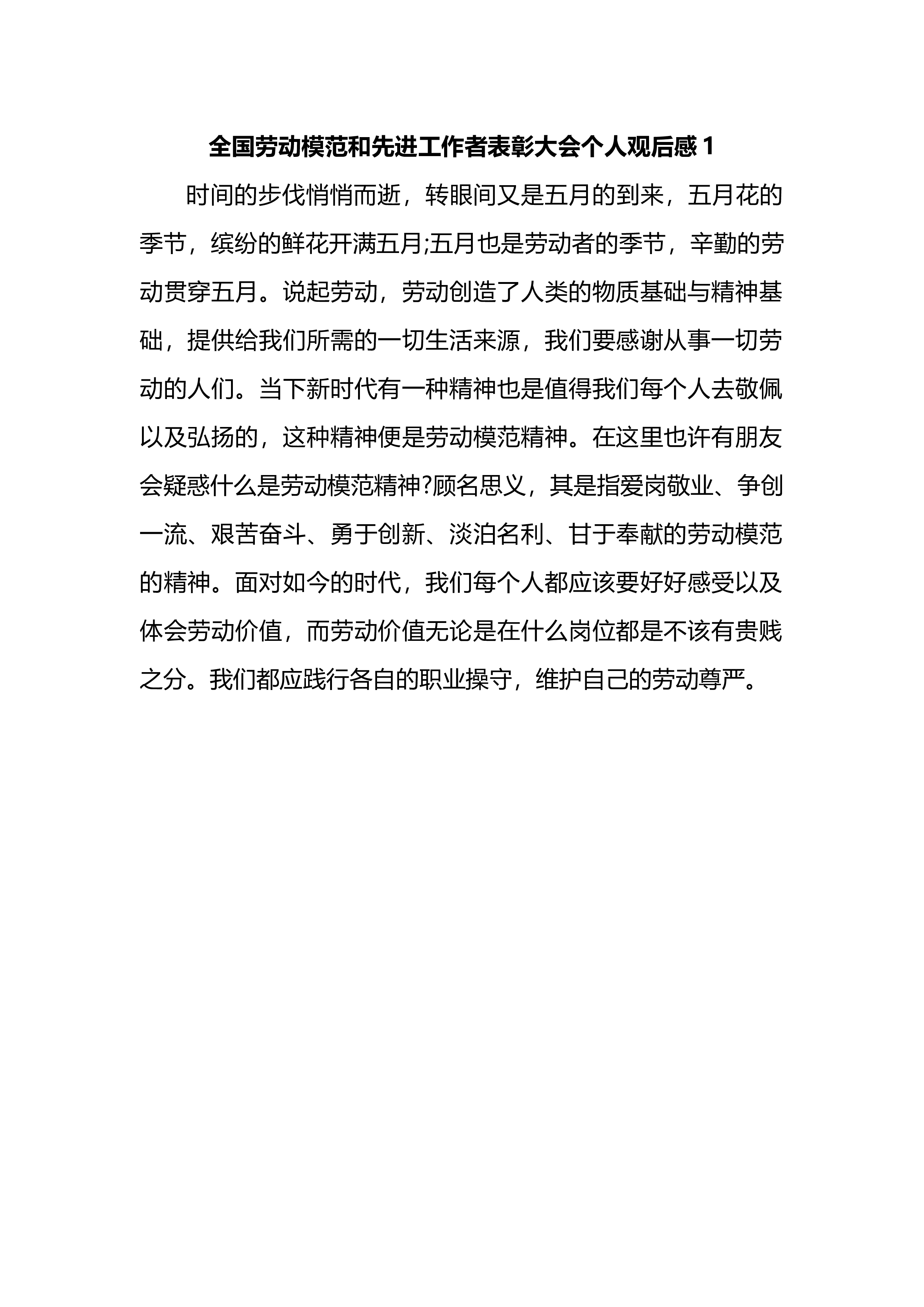 全国劳动模范和先进工作者表彰大会个人观后感1时间的步伐悄悄而逝,转眼间又是五月的到来,五月花的季节,缤纷的鲜花开满五月;五月也是劳动者的季节,辛勤的劳动贯穿五月。说起劳动,劳动创造了人类的物质基础与精神基础,提供给我们所需的一切生活来源,我们要感谢从事一切劳动的人们。当下新时代有一种精神也是值得我们每个人去敬佩以及弘扬的,这种精神便是劳动模范精神。在这里也许有朋友会疑惑什么是劳动模范精神?顾名思义,其是指爱岗敬业、争创一流、艰苦奋斗、勇于创新、淡泊名利、甘于奉献的劳动模范的精神。面对如今的时代,我们每个人都应该要好好感受以及体会劳动价值,而劳动价值无论是在什么岗位都是不该有贵贱之分。我们都应践...