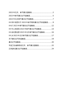 春节廉洁过节提醒函汇编:2023年春节廉洁过节提醒函汇编(12篇)1.【节日“纪”语】2023年元旦、春节廉洁提醒函,请您查收22.2023年春节廉洁过节提醒函................................................43.2023年元旦春节廉洁过节提醒函........................................64.XX高中党委关于2023年春节期间廉洁过节的提醒函....85.XX矿2023年春节廉洁过节提醒函...................................116.XX市人民医院2023年春节廉洁过节提醒函....