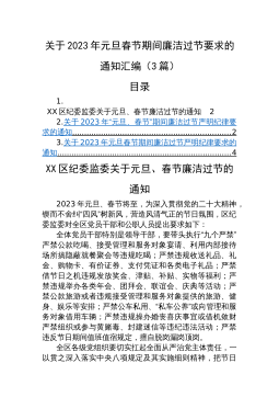 【党风廉政】关于2023年元旦春节期间廉洁过节要求的通知汇编(3篇)