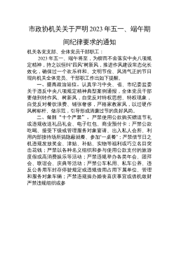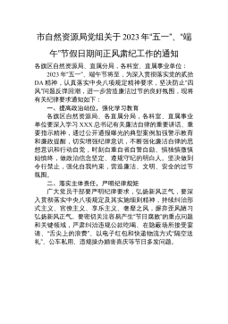 市自然资源局党组关于2023年“五一”、“端午”节假日期间正风肃纪工作的通知(20230428)