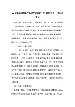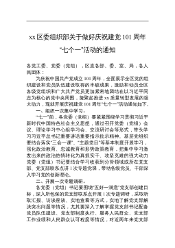xx区委组织部关于做好庆祝建党101周年“七个一”活动的通知 (1)范文