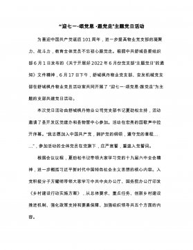 xx区委组织部关于做好庆祝建党101周年“七个一”活动的通知各党工委、党委(党组),区直各部、委、室、局,各人民团体:为庆祝中国共产党成立101周年,全面展示全区党的组织建设和党员队伍建设取得的丰硕成果,激励和动员全区各级党组织和广大共产党员更加紧密地团结在以习近平同志为核心的党中央周围,凝聚起推进xx质量转型发展的强大动力,现就开展庆祝建党101周年“七个一”活动通知如下。一、组织一次集中学习。“七一”前,各党委(党组)要紧紧围绕学习贯彻习近平新时代中国特色社会主义思想,通过召开党委(党组)会议、理论学习中心组学习会、交流研讨会等形式,带头学习习近平总书记重要讲话重要指示批示精神。基层党组织...