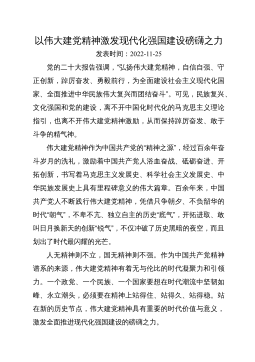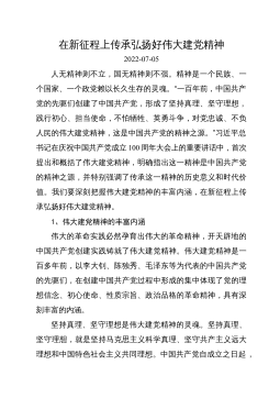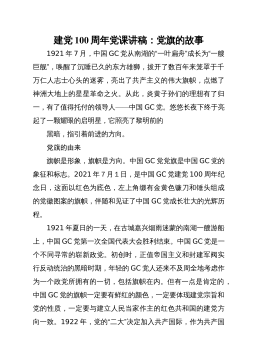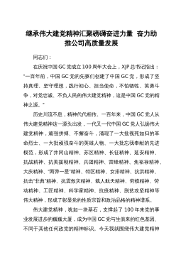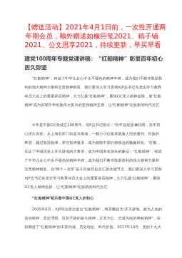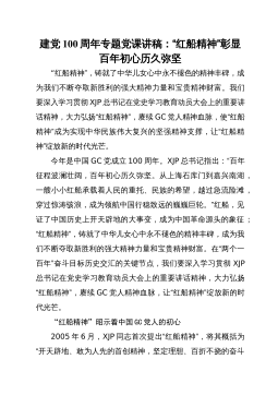 弘扬光荣传统、赓续红色血脉把伟大建党精神继承下去、发扬光大在庆祝中国GC党成立100周年大会上,XJP总书记发表重要讲话,鲜明提出“坚持真理、坚守理想,践行初心、担当使命,不怕牺牲、英勇斗争,对党忠诚、不负人民”的伟大建党精神。伟大建党精神是中国GC党人精神谱系的精神原点、思想基点、逻辑起点,是马克思主义中国化最新成果,是XJP新时代中国特色社会主义思想的重要内容,是新时代党建理论创新重大成果,是中国人民坚定文化自信的精神支撑,是鼓舞广大党员干部投身伟大斗争的精神武器,具有丰富科学内涵和永恒实践价值。今天,我就围绕伟大建党精神产生的历史背景、丰富内涵、弘扬伟大建党精神的重要意义以及实践要求四个...