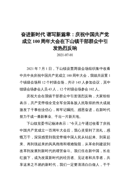 奋进新时代谱写新篇章:庆祝中国共产党成立100周年大会在下山镇干部群众中引发热烈反响