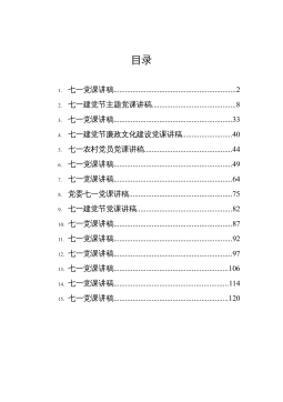 目录1.崇尚共产党人的大德公德私德...........................................................................................................32.伟大建党精神党课讲稿.....................................................................................................................123.从湘南起义感受信仰的力量.................................