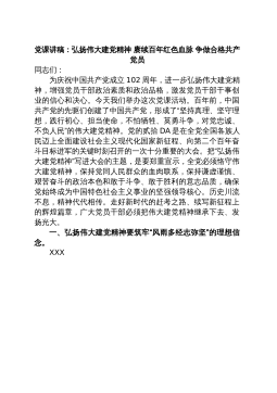 党课讲稿:弘扬伟大建党精神+赓续百年红色血脉+争做合格共产党员