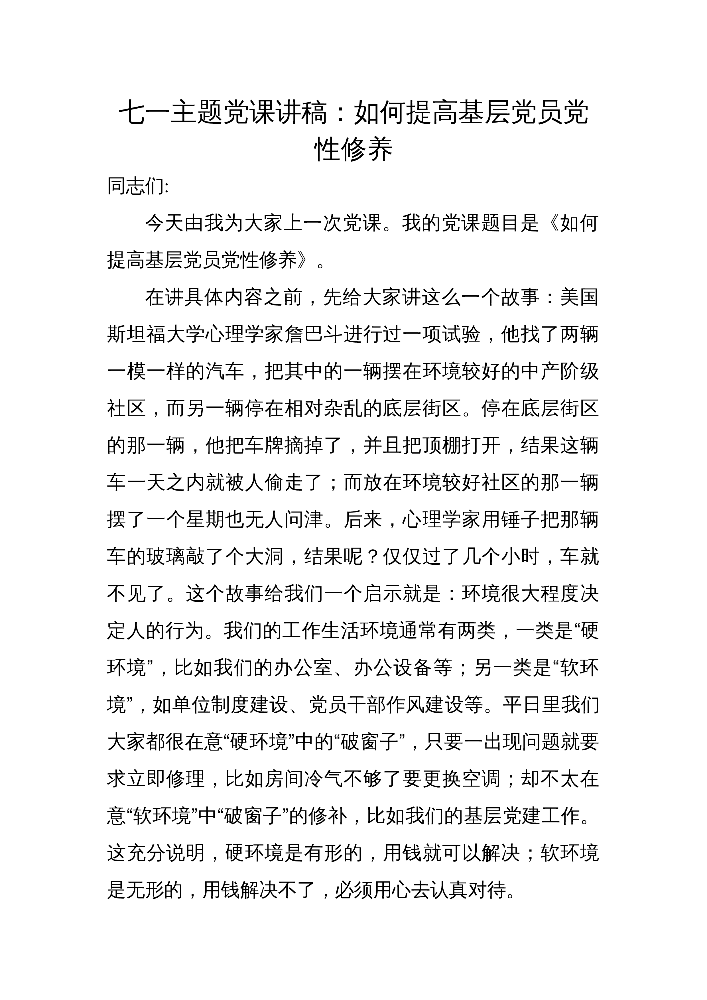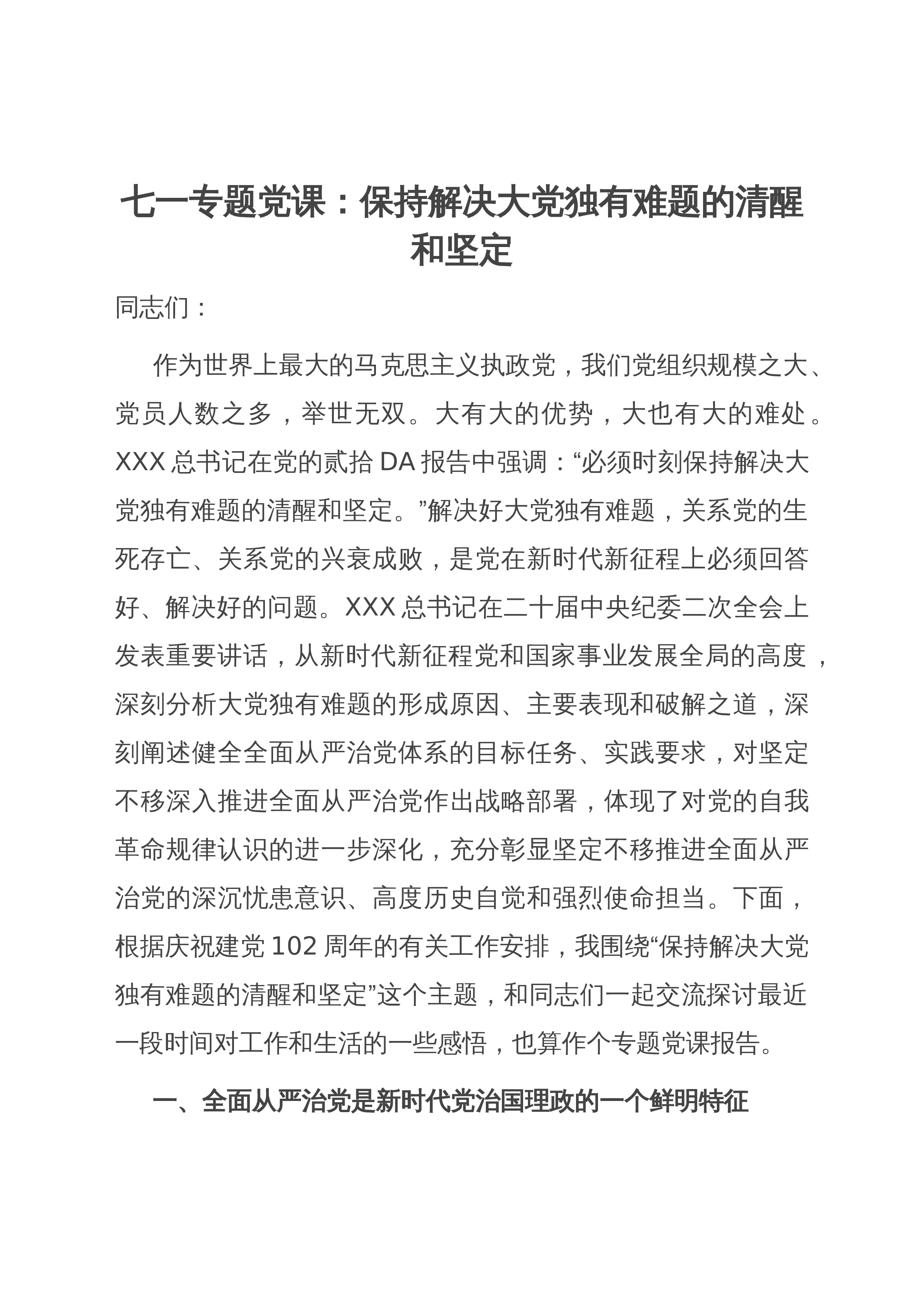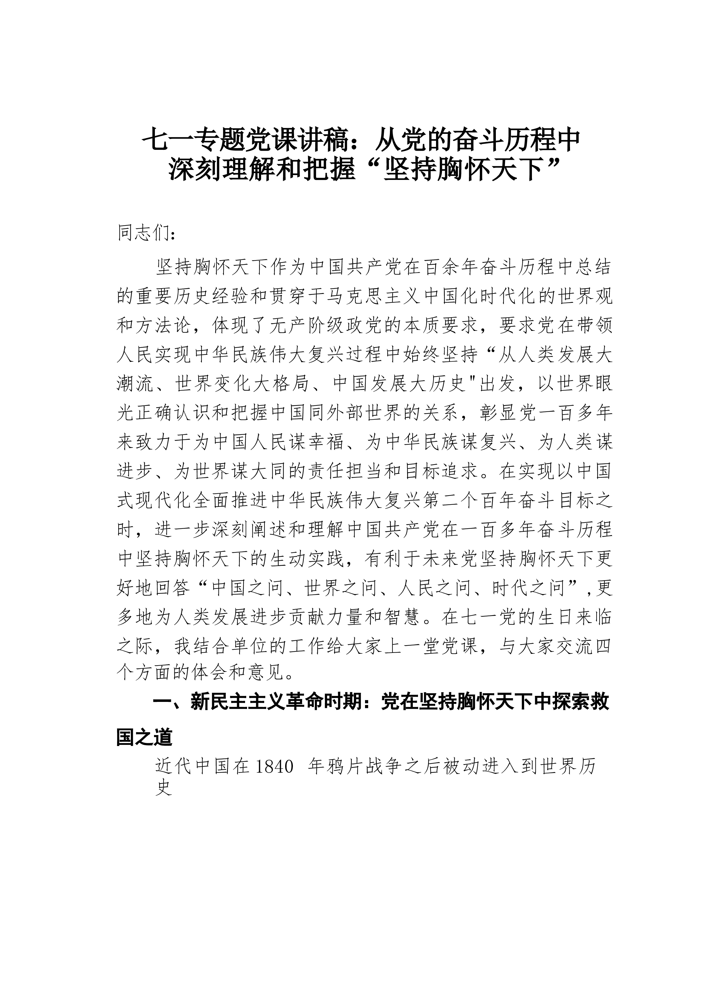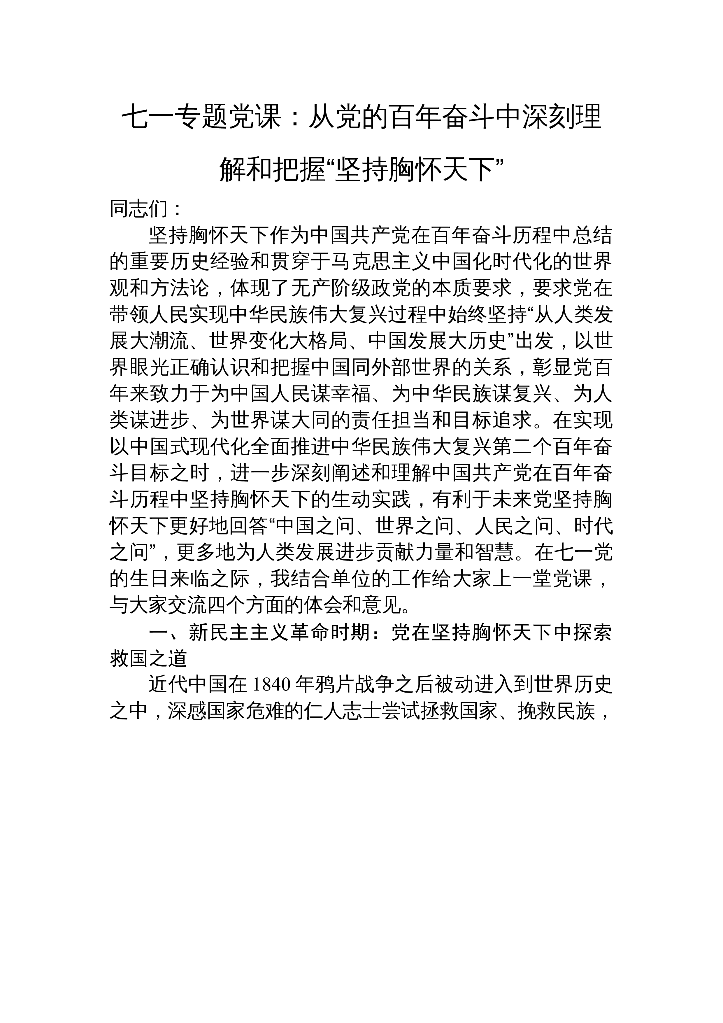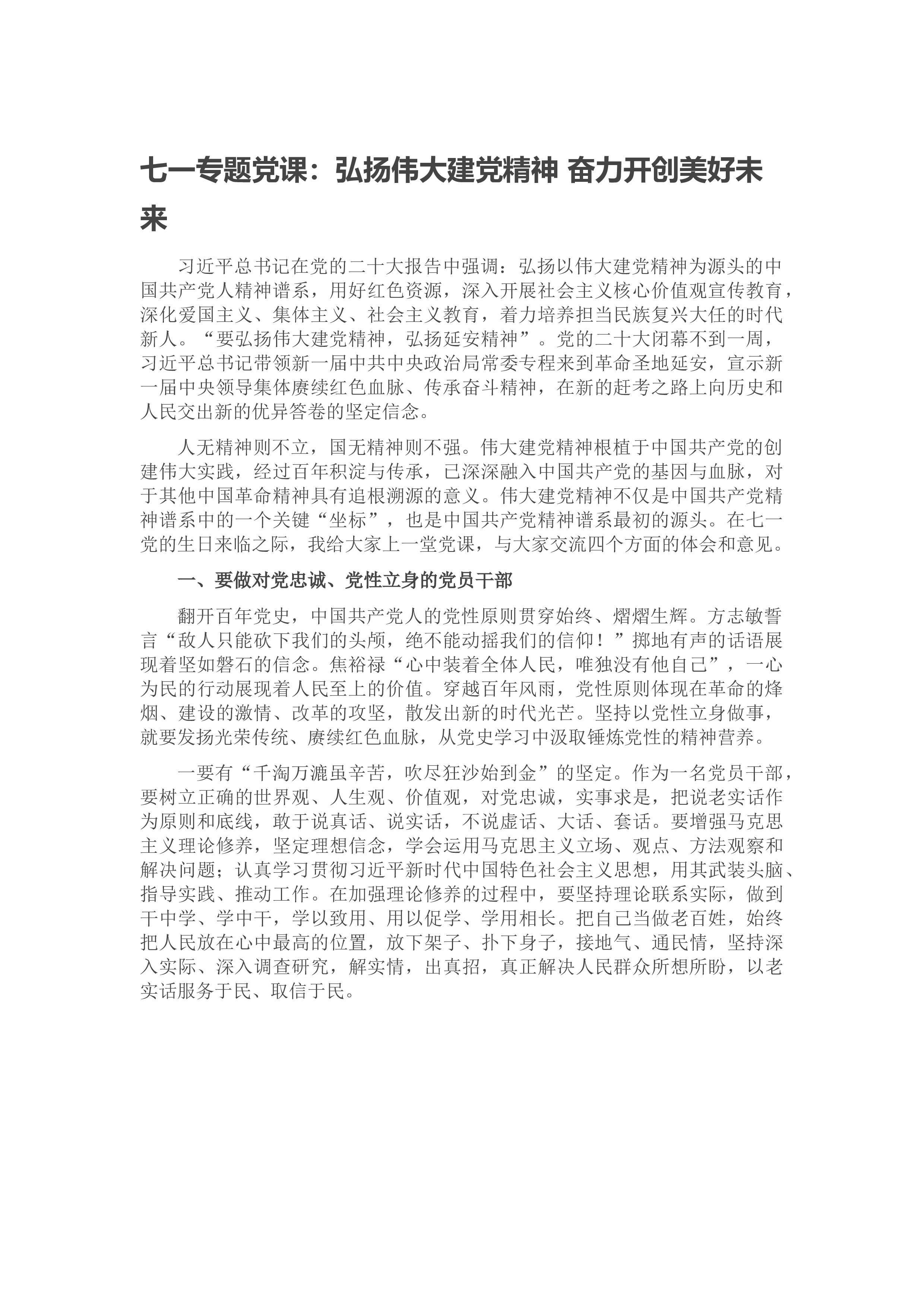 七一专题党课:不忘初心牢记使命勇毅前行以扎实作风推动事业发展同志们:今天,我们在这里隆重召开会议,热烈庆祝伟大的中国共产党诞辰102周年。借此机会,我以习近平总书记对主体教育提出的五个目标,围绕“初心”,与大家作一次交流。一、为什么坚守初心不易首先是坚守不易。古人云“无志之人长立志、有志之人立志长”,大家想一想我们有多少次定了目标:要减肥、要奋斗、要给孩子当榜样,结果是一次次管不嘴,迈不开腿、奋斗停摆、榜样“失败”。坚持是一件非常考验人定力的工作。一个人做一件好事并不难,难的是一辈子做一件好事。雷锋同志在他有限的生命中坚持为人民服务的光辉事迹,昭示着一名共产主义战士坚守初心的生动实践。其次是方...