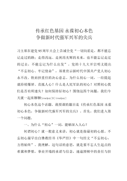 传承红色基因永葆初心本色争做新时代强军兴军的尖兵习主席在建党95周年大会上告诫全党“一切向前走,都不能忘记走过的路;走得再远、走到再光辉的未来,也不能忘记走过的过去,不能忘记为什么出发”。党的十九大开宗明义提出“不忘初心、牢记使命”,郑重宣示新时代中国共产党人初心永不改、铁肩担重任的决心意志。为什么初心一词,一经提起就持续爆屏、直抵人心?什么是人民军队的初心?对照初心我们是否有所迷失?如何保持好初心?围绕这四个问题,我们今天就一起来聊聊[readpay]3[/readpay]初心本色这个话题。我授课的题目是《传承红色基因永葆初心本色,争做新时代强军兴军的尖兵》。首先,我们进入第一个问题。一、为...