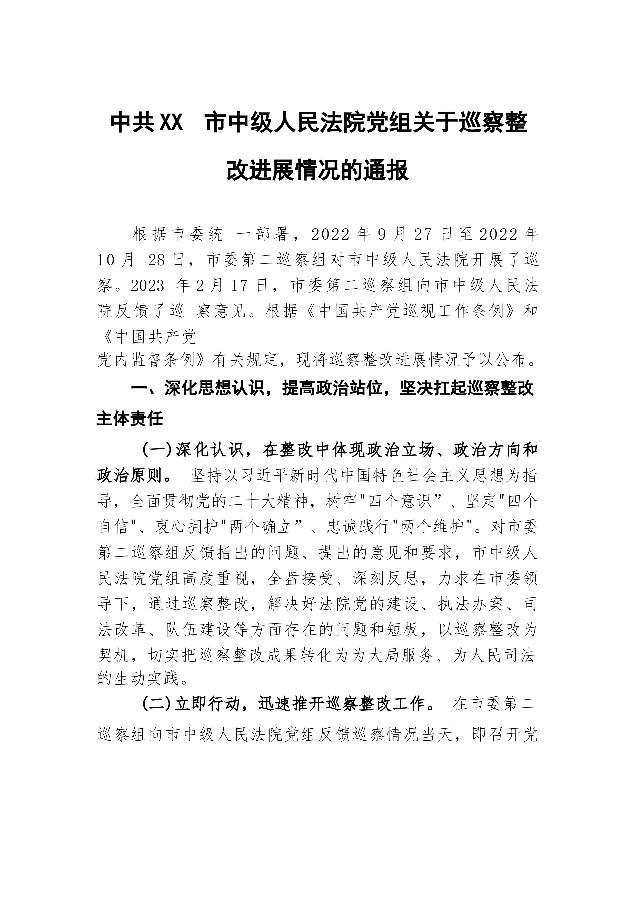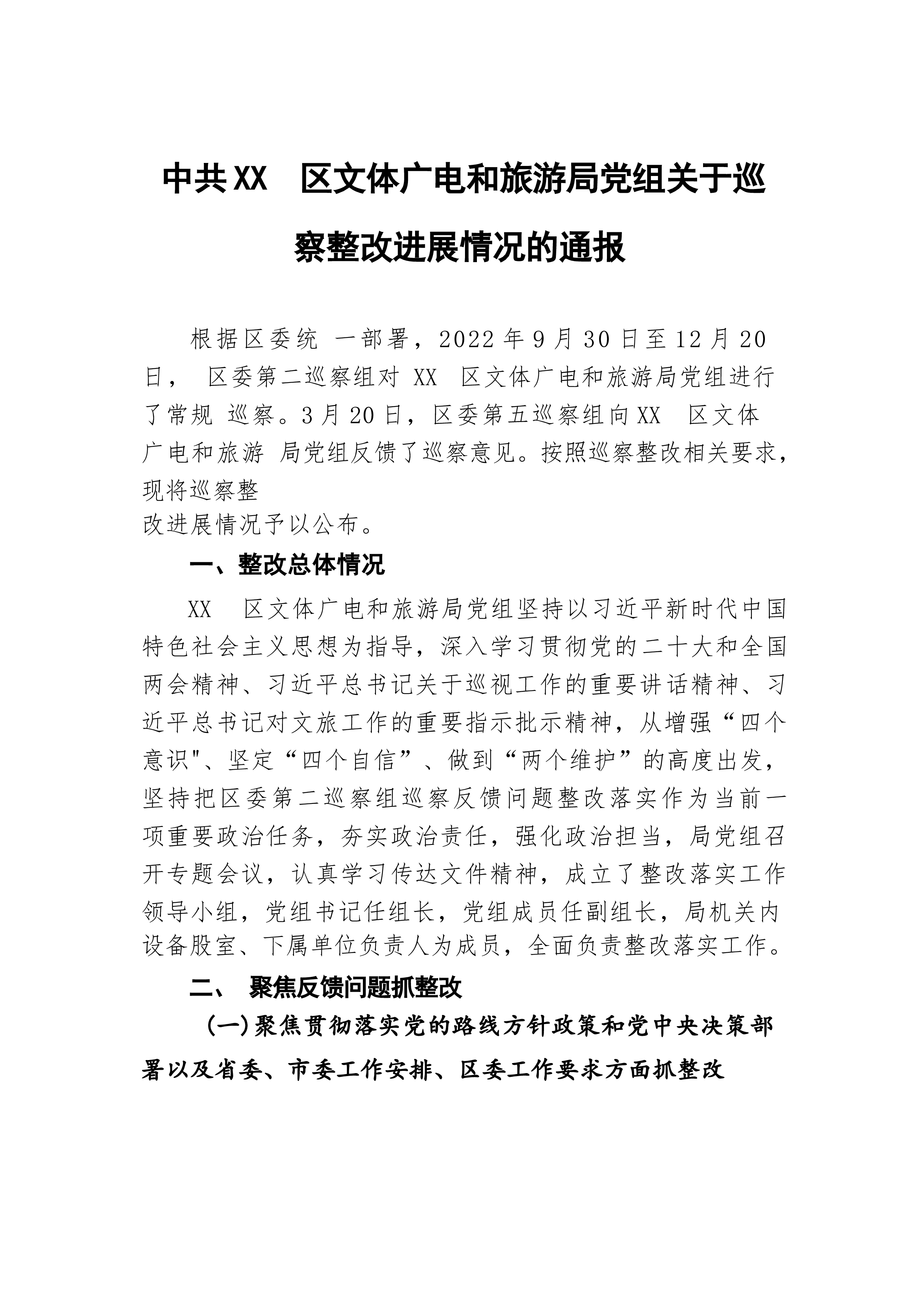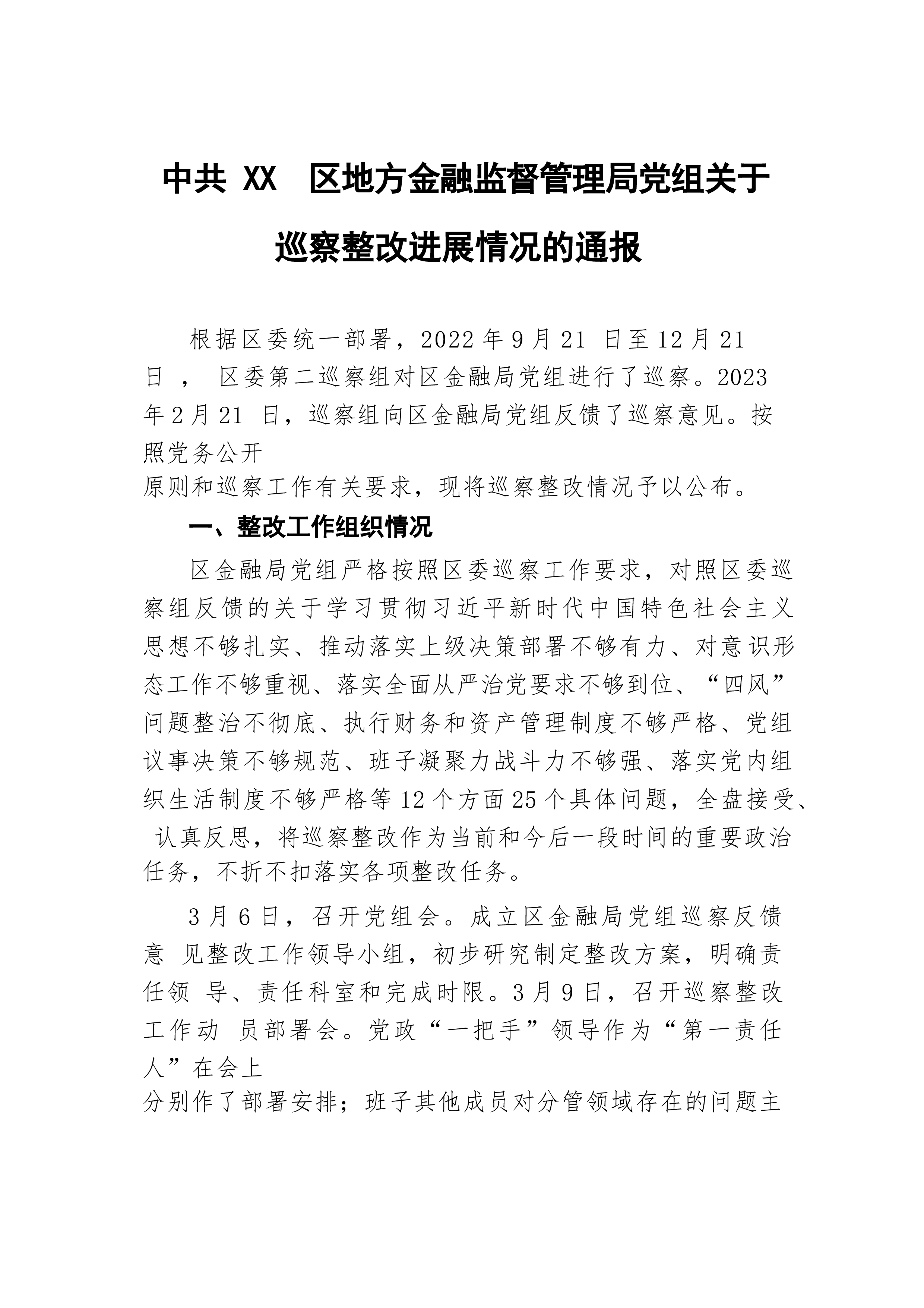 中共XX区地方金融监督管理局党组关于巡察整改进展情况的通报(20230810)