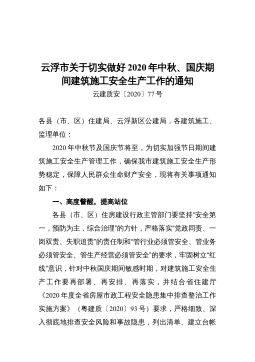 乐平市安全生产委员会办公室关于切实做好“中秋、国庆”期间安全生产工作的通知(20200920)