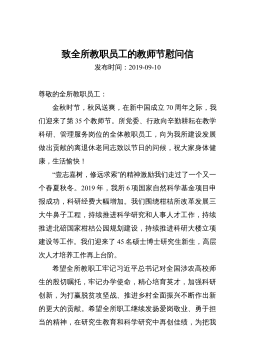 中共四川省委四川省人民政府致全省教师和教育工作者的慰问信2019年09月10日全省广大教师和教育工作者:金秋九月,丹桂飘香。在新中国成立70周年之际,我们迎来了第35个教师节。省委、省政府向广大教师和教育工作者致以节日的祝贺和亲切的问候!教育是国之大计、党之大计。习近平总书记高度重视教育工作,强调教育是民族振兴、社会进步的重要基石,是功在当代、利在千秋的德政工程。省委、省政府始终把教育事业放在优先发展位置,大力推进教育现代化,加快补齐教育短板,四川教育事业发展取得了新的成绩。全省广大教师和教育工作者认真贯彻党的教育方针,切实担负起传播知识、传播思想、传播真理,塑造灵魂、塑造生命塑造新人的时代重...