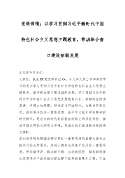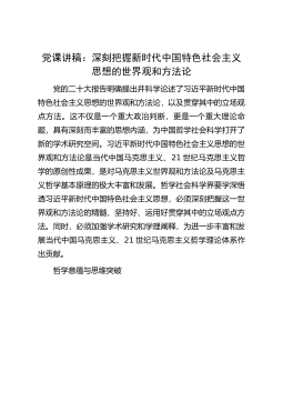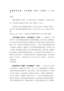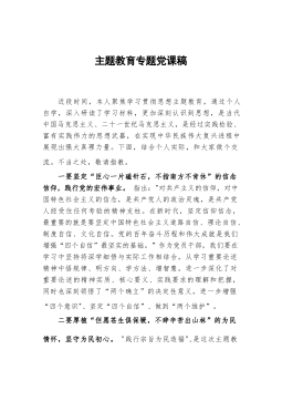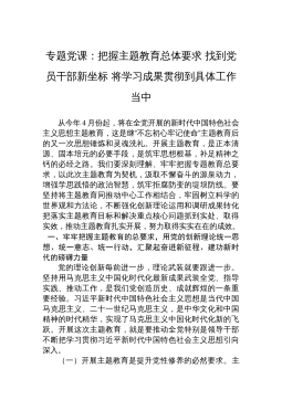 专题党课:把握主题教育总体要求找到党员干部新坐标将学习成果贯彻到具体工作当中从今年4月份起,将在全党开展的新时代中国特色社会主义思想主题教育,这是继“不忘初心牢记使命”主题教育后的又一次思想锤炼和灵魂洗礼。开展主题教育,是正本清源、固本培元的必要手段,是筑牢思想根基,补足精神之钙的必经之路。我们要深刻理解、牢牢把握专题教育总要求,以此次主题教育为契机,汲取不懈奋斗的源泉动力,增强学思践悟的政治智慧,筑牢拒腐防变的堤坝防线。要坚持将主题教育同推动中心工作相结合,牢固树立科学的世界观和方法论,不断强化创新理论运用和调研成果转化把落实主题教育目标和解决重点核心问题抓到实处、取得实效,推动主题教育扎实...