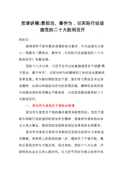 公司党支部书记党课讲稿:坚定不移贯彻落实全面从严治党战略方针打好党风廉政建设持久战同志们:大家好!根据公司党风廉政建设和反腐败工作责任制的要求,今天在这里我为大家上一堂廉洁党课,党课题目为:坚定不移贯彻落实全面从严治党战略方针 打好党风廉政建设持久战。习近平总书记在参加十三届全国人大五次会议内蒙古代表团审议时,回顾新时代党和人民奋进历程,高度概括了这一历程中形成的“五个必由之路”重要认识,其中一个重要认识就是“全面从严治党是党永葆生机活力、走好新的赶考之路的必由之路”。公司董事长在2022年党建及党风廉政建设和反腐败工作会上也指出:我们要把落实管党治企作为最根本的政治担当,以知责于心、担责于身...