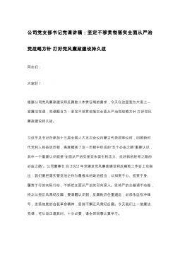 公司党支部书记党课讲稿:坚定不移贯彻落实全面从严治党战略方针 打好党风廉政建设持久战