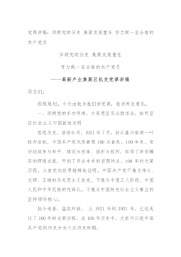 机关党课讲稿:重温党的历史,补足精神之钙——让铁道兵精神薪火相传同志们:按照开展党史学习教育的有关要求,今天由我为大家上一堂党史教育专题党课。大家都知道,7月1日,我们迎来了中国共产dang成立100周年,这一天,我收看了中国共产dang建党100周年庆典,聆听了XJP总书记的重要讲话,作为一名中国共产dang党员,我倍感自豪和骄傲。100年来,中国共产dang紧紧依靠人民,跨过一道又一道沟坎,取得一个又一个胜利,创造了人类发展史上惊天动地的奇迹,让中华文明在现代化进程中焕发出新的蓬勃生机,让科学社会主义在21世纪焕发出新的蓬勃生机,使中华民族焕发出新的蓬勃生机。2021年2月20日,XJP总...