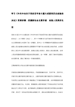 学习《中共中央关于党的百年奋斗重大成就和历史经验的决议》党课讲稿:把握新社会主要矛盾 创造人民美好生活党的XX届X中X会通过的《中共中央关于党的百年奋斗重大成就和历史经验的决议》(以下简称《决议》),用“十个明确”对习近平新时代中国特色社会主义思想的核心内容作了进一步概括,其中之一为“明确新时代我国社会主要矛盾是人民日益增长的美好生活需要和不平衡不充分的发展之间的矛盾,必须坚持以人民为中心的发展思想,发展全过程人民民主,推动人的全面发展、全体人民共同富裕取得更为明显的实质性进展”。这一“明确”,揭示了新时代我国社会主要矛盾,提出了解决这一矛盾的新要求。正确判断和认识社会主要矛盾是我们党的重要经...