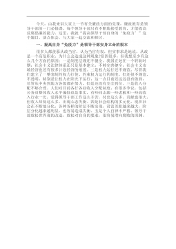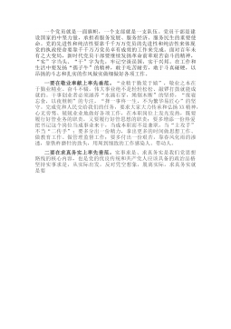 一个党员就是一面旗帜,一个支部就是一支队伍。党员干部是建设国家的中坚力量,承担着服务发展、服务经济、服务民生的重要使命。党的先进性和纯洁性要靠千千万万党员的先进性和纯洁性来体现党的执政使命要靠千千万万党员卓有成效的工作来完成。面对百年未有之大变局,新时代党员干部要继续发扬革命前辈艰苦奋斗的精神,“实”字当头、“干”字为先,牢记空谈误国,实干兴邦。在工作和生活中要发扬“孺子牛”的精神,敢于吃苦耐劳,敢于斗真碰硬,以昂扬的斗志和扎实的作风做实做细做好各项工作。一要在敬业奉献上率先垂范。“业精于勤荒于嬉”,敬业之本在于勤业精业、奋斗不辍。伟大事业绝不是轻轻松松、敲锣打鼓就能成就的。干事创业者必须涵养...