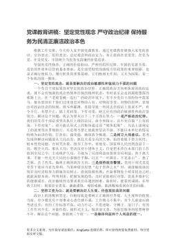 党课教育讲稿:坚定党性观念 严守政治纪律 保持服务为民清正廉洁政治本色