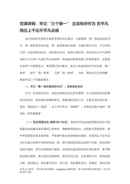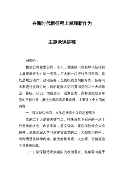 区委政法委”不忘初心、牢记使命“党课讲稿“不忘初心,牢记使命”,是中国共产党人的责任担当和历史传承。习总书记在党的十九大报告中指出:“中国共产党人的初心和使命,就是为中国人民谋幸福,为中华民族谋复兴”。初心是原点,是一种由心而发的理念、信念;使命是目标,是一种重大的责任担当。怎样才能更好地牢固初心、担当使命?这是我们中国共产党人必须融会贯通的问题,也是开展“不忘初心,牢记使命”主题教育活动的基本要求。作为新时代青年,我们理应争做构筑“中国梦”的“答卷人”。“时代是出卷人、我们是答卷人、人民是阅卷人”,习总书记这一论述让人耳目一新。我们作为一名普通党员,务必要做到不忘初心、牢记使命,只有这样才能...