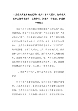 11月份主题教育廉政党课:落实以学正风要求,把改作风贯穿主题教育始终,在转作风、抓落实、讲担当、作贡献中带好头