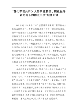 “强化牢记共产党人的宗旨意识,积极做好新形势下的群众工作”专题党课