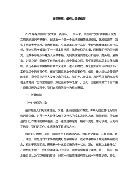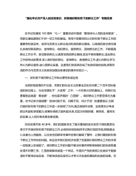 “强化牢记共产党人的宗旨意识,积极做好新形势下的群众工作”专题党课总书记在建党100周年“七一”重要讲话中强调“要保持与人民的血肉联系”。而群众基础是我们干好一切工作的基础。领导干部要深刻认识新形势下群众工作的重要性和紧迫性,坚持马克思主义群众观点和党的群众路线。以高度的政治责任感扎实做好联系群众、宣传群众、组织群众、服务群众、团结群众的工作,不断提高群众工作水平。密切联系群众,认真贯彻党的群众路线,坚定不移依靠群众,适应群众工作新特点新要求,深入做好组织群众、宣传群众、教育群众工作,虚心向群众学习,热心为群众服务,诚心受群众监督。这是我们党系统总结了执政经验的实践,探索形成的作为马克思主义执...