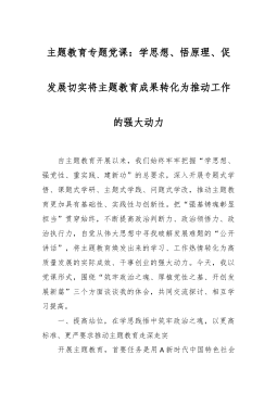 主题教育廉政党课:把改作风贯穿主题教育始终在转作风、抓落实、讲担当、作贡献中带好头习近平总书记在内蒙古考察时围绕“以学正风”提出明确要求,强调“大兴务实之风”“弘扬清廉之风”“养成俭朴之风”。作风是事业成败的关键,党员干部的作风,关系党内风气和政治生态,关系民心向背,关系党的生死存亡。党员干部要牢牢把握习近平总书记对“以学正风”的深刻阐述,不断在大兴务实之风、弘扬清廉之风、养成俭朴之风中提升为民服务质效,把改作风贯穿主题教育始终,着力解决党风方面突出问题,让广大群众切实感受到我们党把自我革命进行到底的决心和毅力。下面,我围绕作风建设的四个方面,给大家上一堂专题党课。一、持续“转作风”,树牢正确...