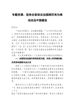 专题党课:坚持全面依法治国踔厉有为推动法治中国建设