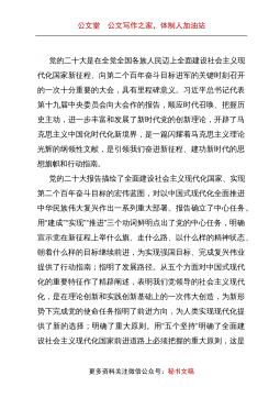 专题党课:坚持全面依法治国踔厉有为推动法治中国建设同志们:“法治兴则国兴,法治强则国强。”以习近平同志为核心的党中央对全面依法治国高度重视,从关系党和国家长治久安的战略高度来定位法治、布局法治、厉行法治,把全面依法治国放在党和国家事业发展全局中来谋划,来推进。习近平总书记在党的二十大开幕会上的报告中23次提到了“法治",这充分体现了党中央对法治工作的高度重视。今天的党课,我以《坚持全面依法治国踔厉有为推动法治中国建设》为题,为大家讲解党的二十大报告中的全面依法治国部分。一、全面依法治国关系党执政兴国,关系人民幸福安康,关系党和国家长治久安党的二十大报告全面阐述了中国式现代化的中国特色和本质要求...