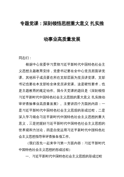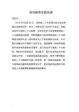 党课讲稿:紧握红色“接力棒”构建治理“大体系”跑出工作“加速度”同志们:1921年,在中华民族多灾多难的岁月中,中国共产党诞生了。在这一百多年的艰辛奋斗中,中国共产党从小小红船成长为巍巍巨轮,从南湖红船播下第一粒革命的火种,到如今带领中国人民实现民族复兴的宏图伟业,取得的辉煌成就举世瞩目,留下的宝贵经验和精神财富弥足珍贵。以史为鉴,可以知兴替。过去一百多年,中国共产党向人民、向历史交出了一份优异的答卷。现在,中国共产党团结带领中国人民又踏上了实现第二个百年奋斗目标新的赶考之路。站在新的历史起点,在开启全面建设社会主义现代化强国新征程中,我们该如何书写优异答卷?需要每一名党员干部深刻思考实践,我...