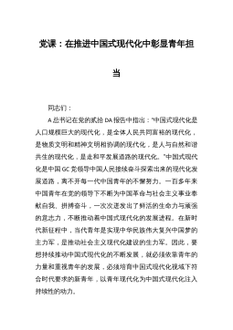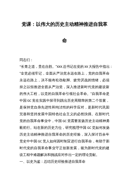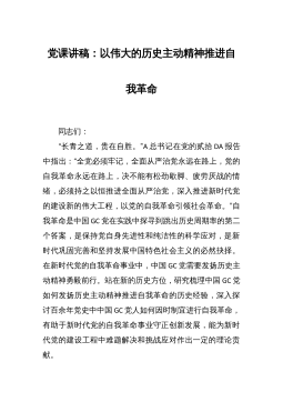 党课讲稿:深刻认识中国GC党跳出历史周期率的两个答案全力走好新征程赶考之路 同志们: 历史周期率成为中国GC党的重大执政课题,源于百年党史上著名的“窑洞对”。对中国GC党而言,“窑洞对”至今都起着鞭策和警示作用,始终是政坛和学术界持续关注、常谈常新的经典话题。面对“窑洞之问”,革命时期,毛泽东作出了发展“民主新路”的解答;进入新时代,A总书记提出了“勇于自我革命”的第二个答案。“两个答案”既饱含历史记忆又镌刻时代烙印,是中国GC党发扬伟大历史主动精神,在不同历史条件下对国家治理、执政党建设以及长期执政的两次理性思考,彰显了中国GC党执政和治国理政的核心逻辑、基本经验和实践路向,深刻推进了跳...