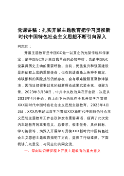 2023年学习贯彻XXX新时代中国特色社会主义思想主题教育读书班专题党课讲稿