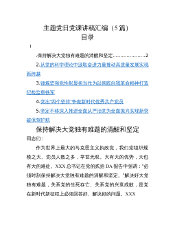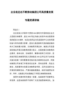 专题党课:深刻领悟XXX新时代中国特色社会主义思想重大意义扎实推动事业高质量发展同志们:根据中心党委学习贯彻XXX新时代中国特色社会主义思想主体教育安排,党委书记要在全中心党员层面讲党课。其他班子成员要在所在支部层面为党员讲党课。支部书记也要在本支部给全体党员讲党课。这是硬性要求,也是主体教育的规定动作。我今天党课的题目是《深刻领悟XXX新时代中国特色社会主义思想的重大意义扎实推动审评查验事业高质量发展》。主要讲四个方面的内容:一是XXX新时代中国特色社会主义思想的形成过程,二是深入学习领会XXX新时代中国特色社会主义思想的重大意义,三是把握好XXX新时代中国特色社会主义思想的世界观和方法论,...
