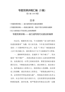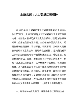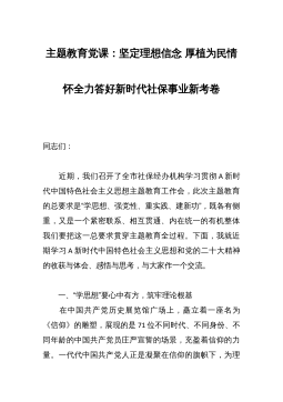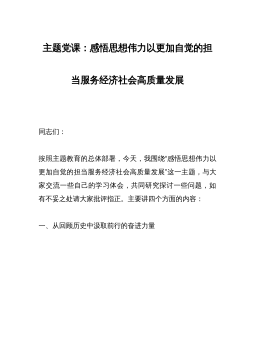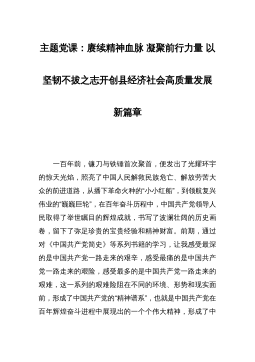 主题党课:赓续精神血脉凝聚前行力量以坚韧不拔之志开创县经济社会高质量发展新篇章 一百年前,镰刀与铁锤首次聚首,便发出了光耀环宇的惊天光焰,照亮了中国人民解救民族危亡、解放劳苦大众的前进道路,从播下革命火种的“小小红船”,到领航复兴伟业的“巍巍巨轮”,在百年奋斗历程中,中国共产党领导人民取得了举世瞩目的辉煌成就,书写了波澜壮阔的历史画卷,留下了弥足珍贵的宝贵经验和精神财富。前期,通过对《中国共产党简史》等系列书籍的学习,让我感受最深的是中国共产党一路走来的艰辛,感受最痛的是中国共产党一路走来的艰险,感受最多的是中国共产党一路走来的艰难,这一系列的艰难险阻在不同的环境、形势和现实面前,形成了中国...