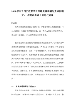 2021年关于四史教育学习专题党课讲稿与党课讲稿文: 答好赶考路上的时代问卷