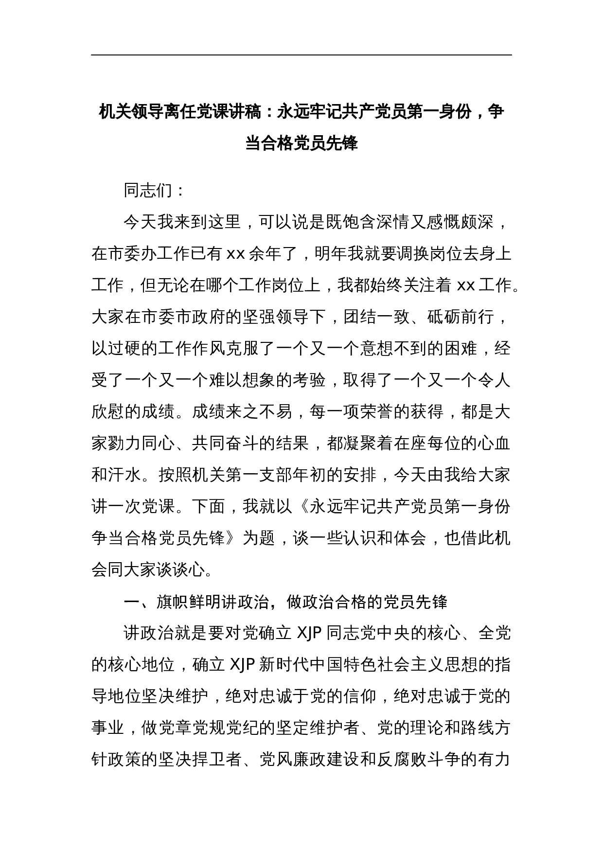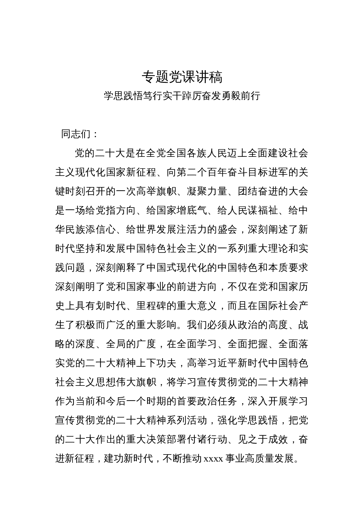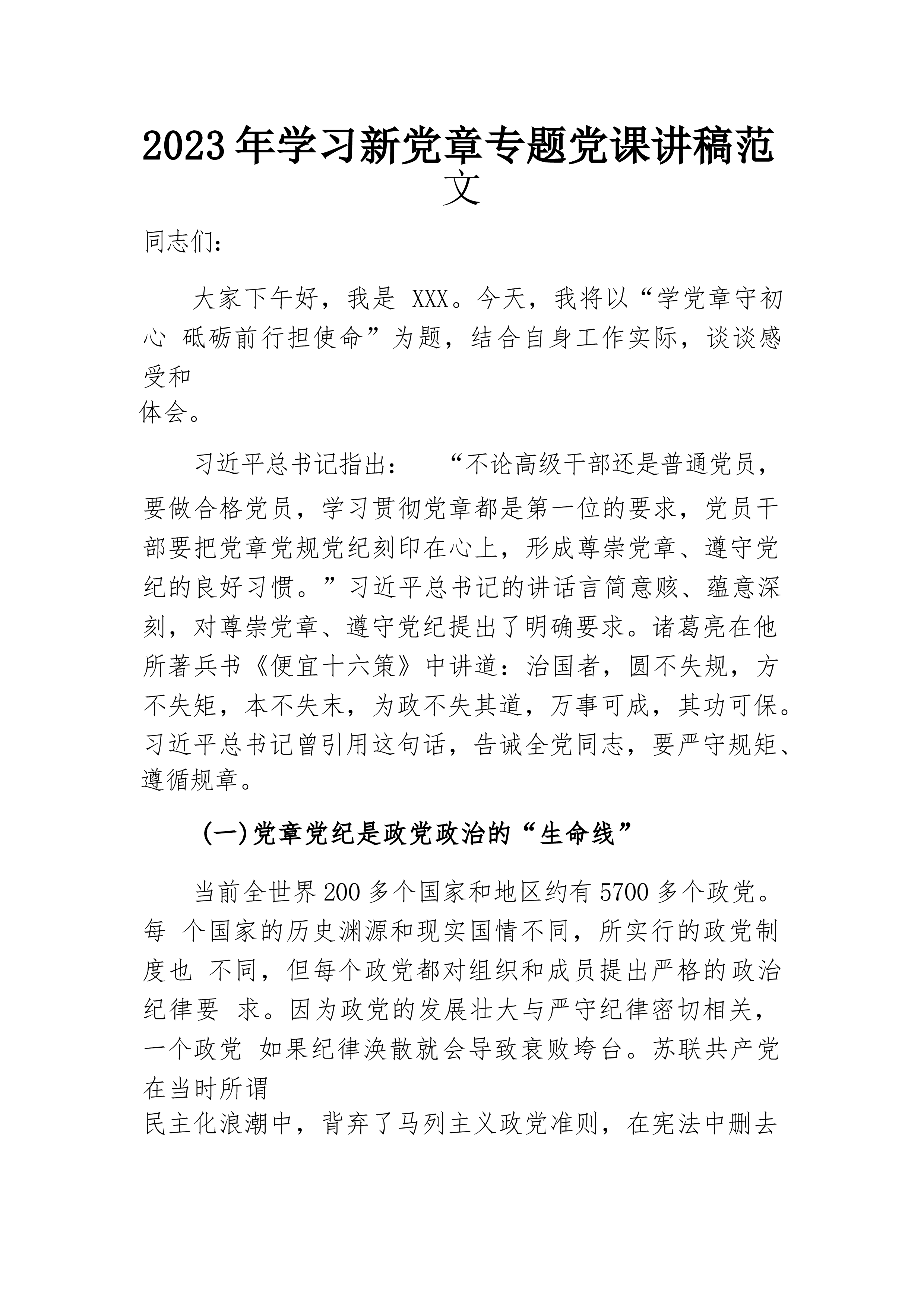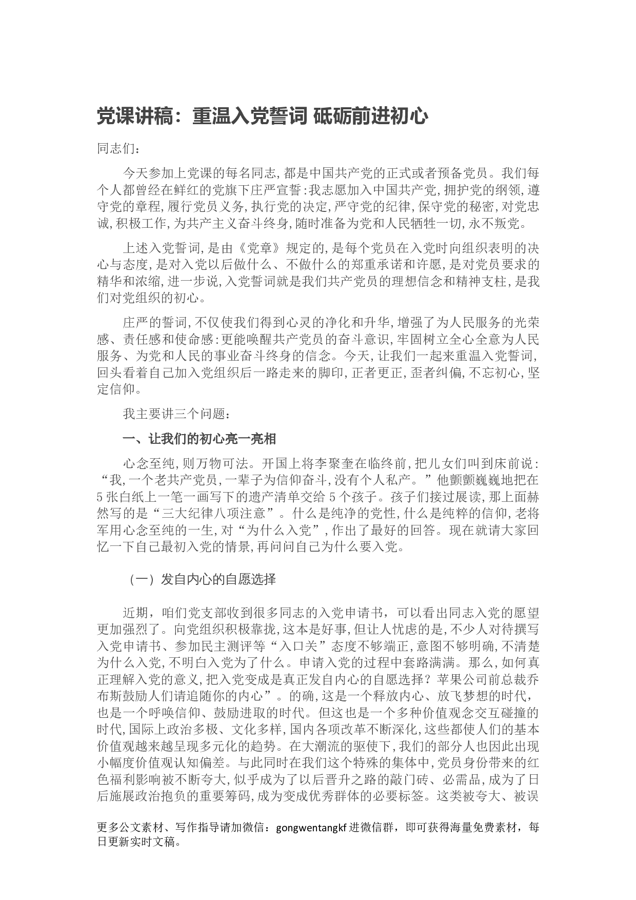 党课讲稿:重温入党誓词 砥砺前进初心范文