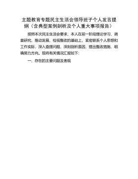 主题教育民主生活会:主题教育专题民主生活会领导班子个人发言提纲(含典型案例剖析及个人重大事项报告)